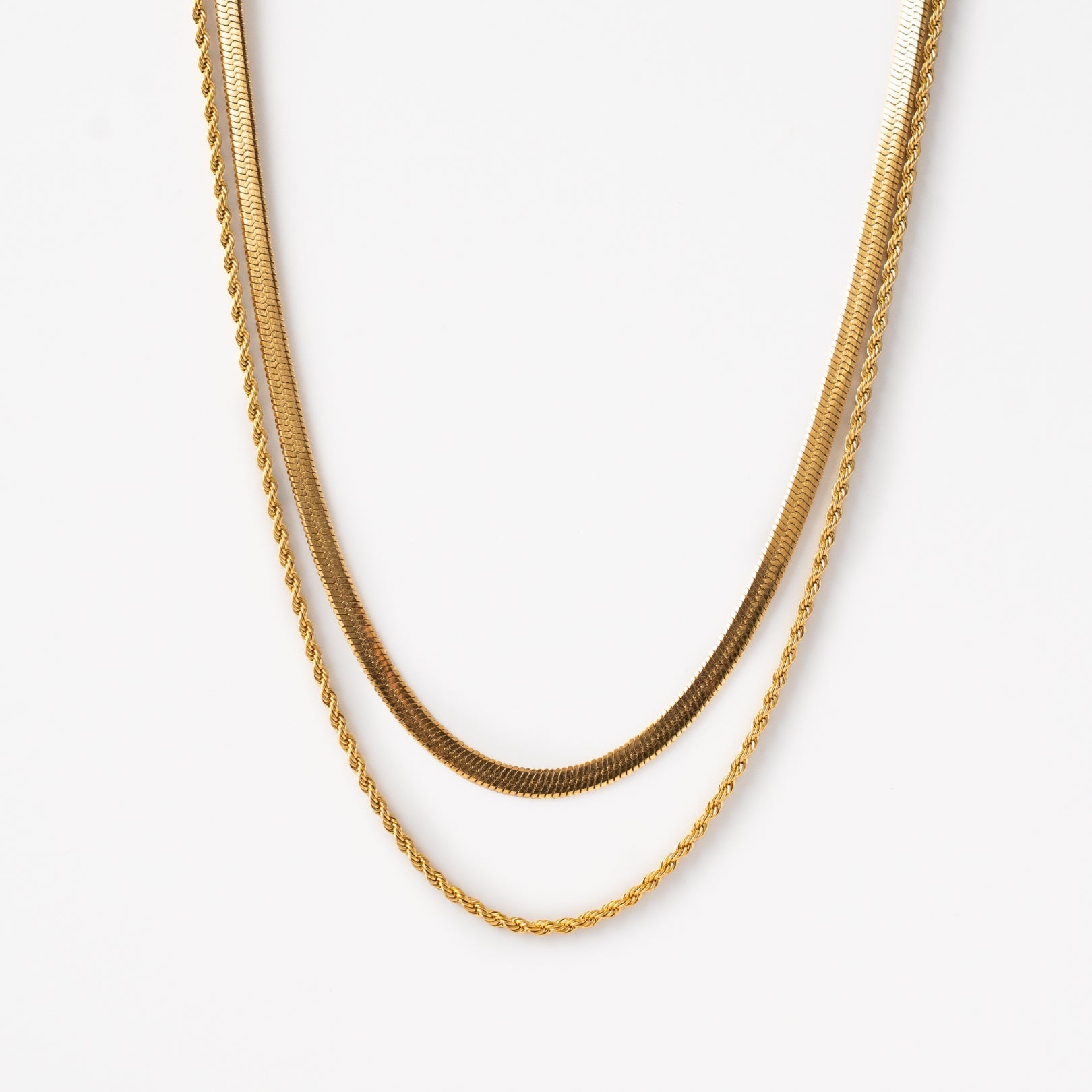 Notre collier Double Corde – Finition dorée combine deux de nos styles les plus populaires en un seul bijou. Parfait pour celles qui aiment un look varié et dynamique.