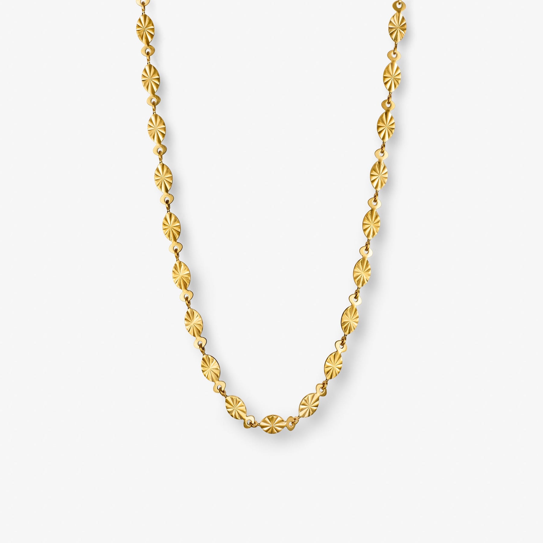 Notre collier Soleil – Finition dorée, un modèle très apprécié, brille magnifiquement lorsque la lumière le touche. Un design élégant et expressif, parfait comme cadeau pour vous-même ou pour quelqu’un que vous aimez.