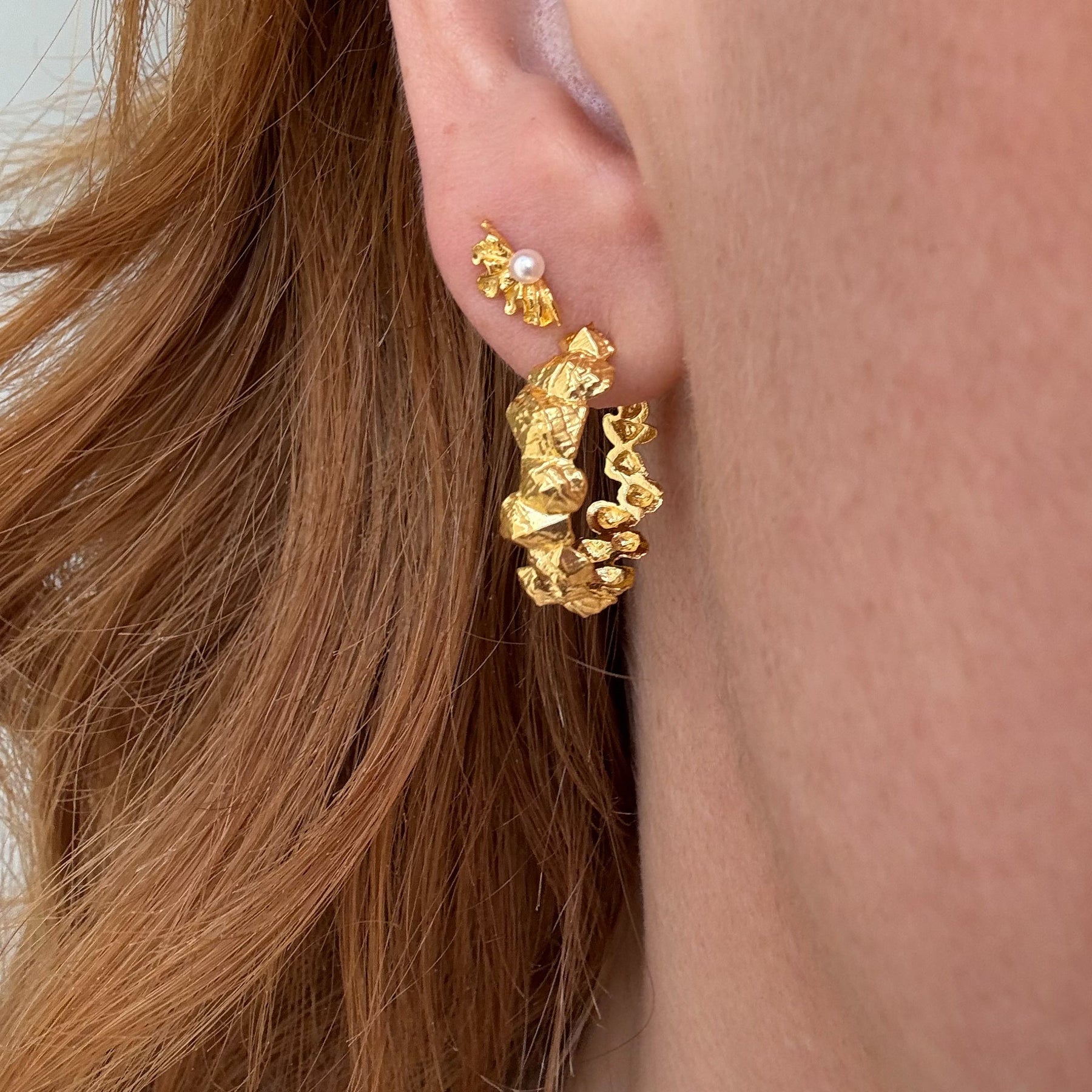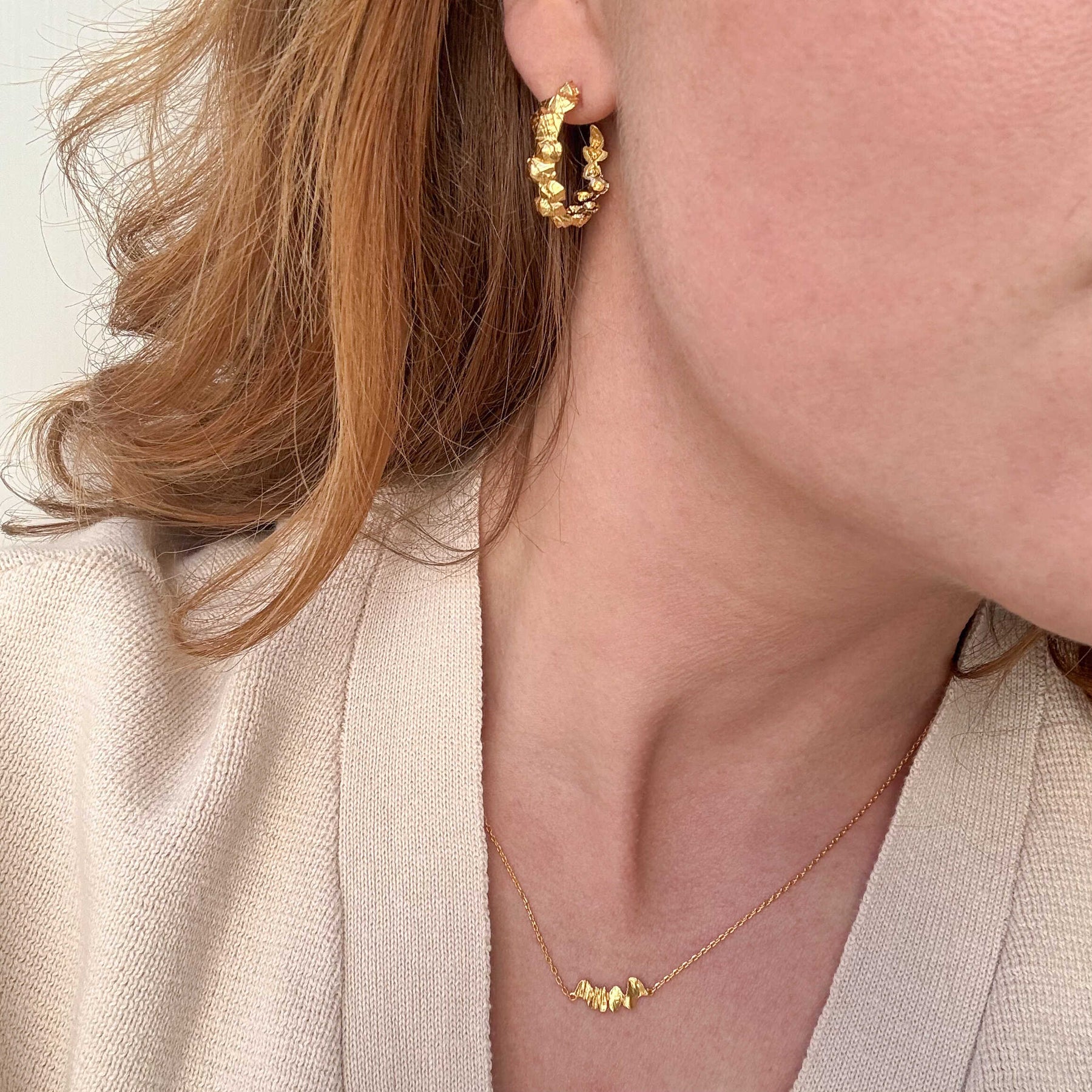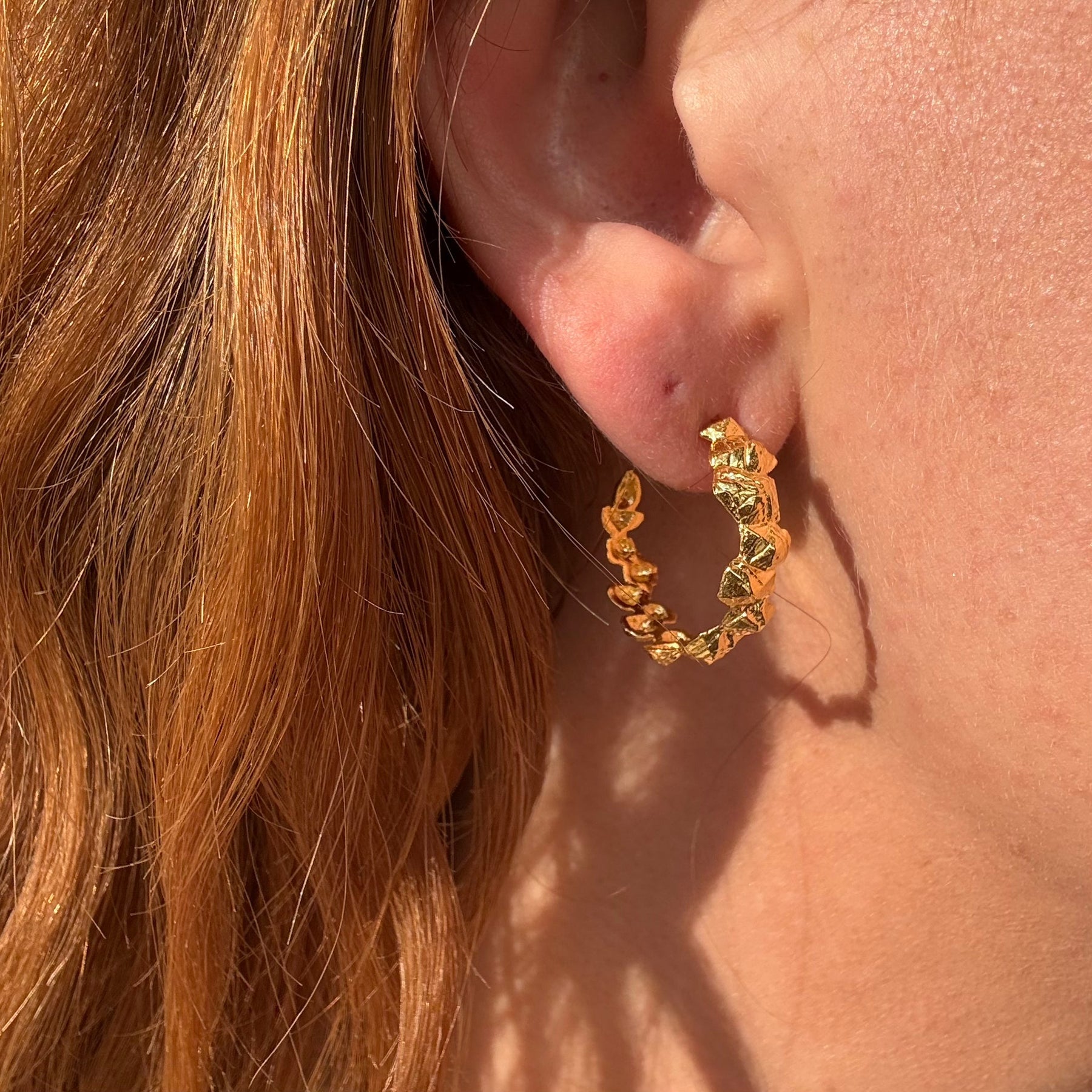 Nos créoles Chunky Edge – Finition dorée sont des boucles d’oreilles modernes au design doré, avec une belle texture expressive et une touche audacieuse.