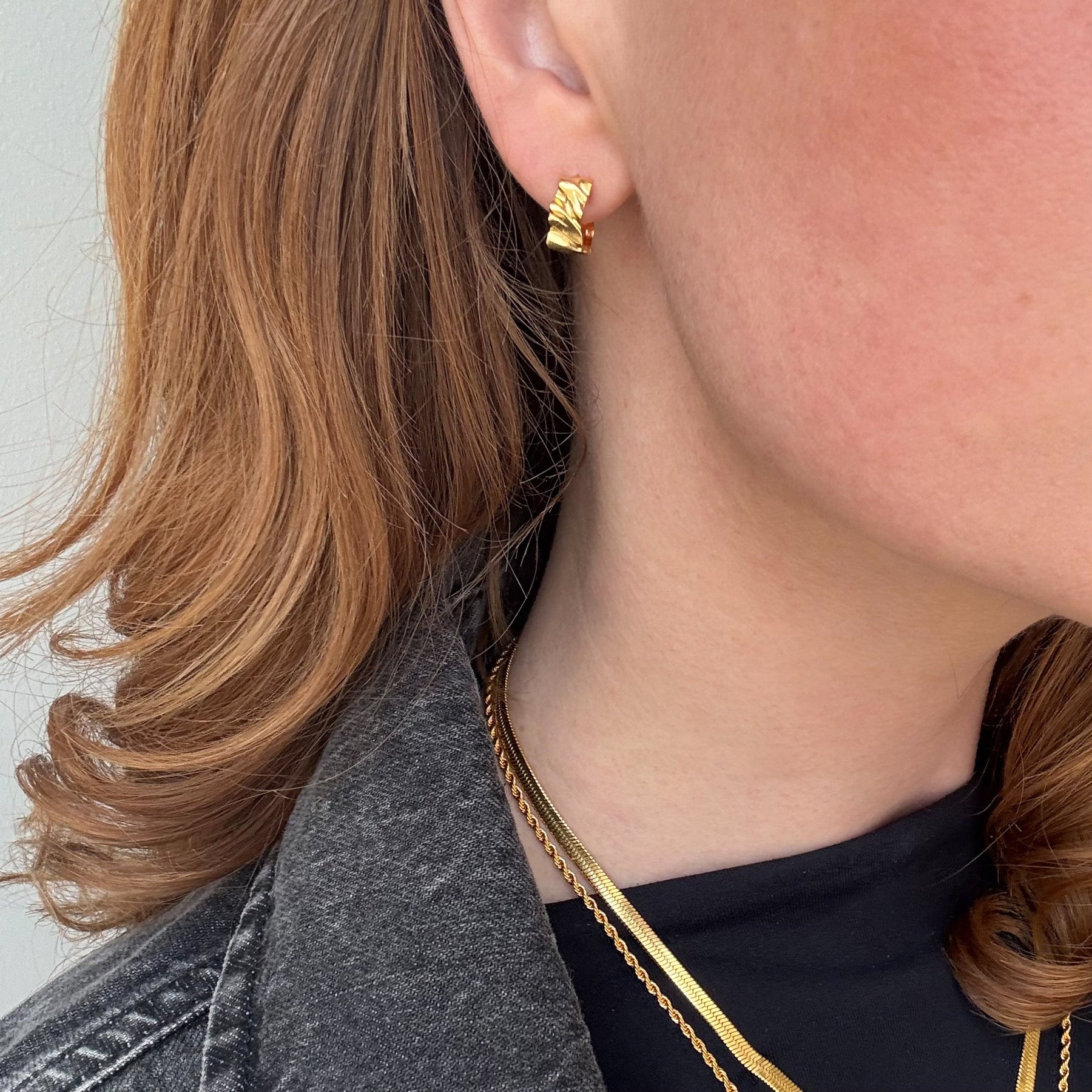 Nos créoles Wave Twist 12 mm – Finition dorée sont des boucles d’oreilles modernes avec des détails expressifs qui apportent une touche de caractère à votre look.