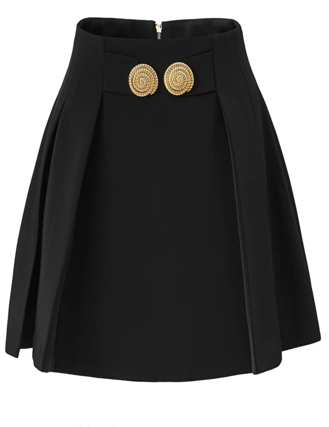 Le luxueux tissu en velours enveloppe la silhouette avec classe, tandis que le col haut et les épaules structurées créent une déclaration de force et de confiance. De subtils détails dorés ajoutent une touche de glamour italien — juste ce qu’il faut pour se faire remarquer avec style.